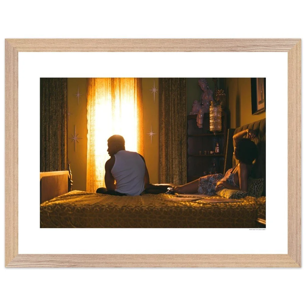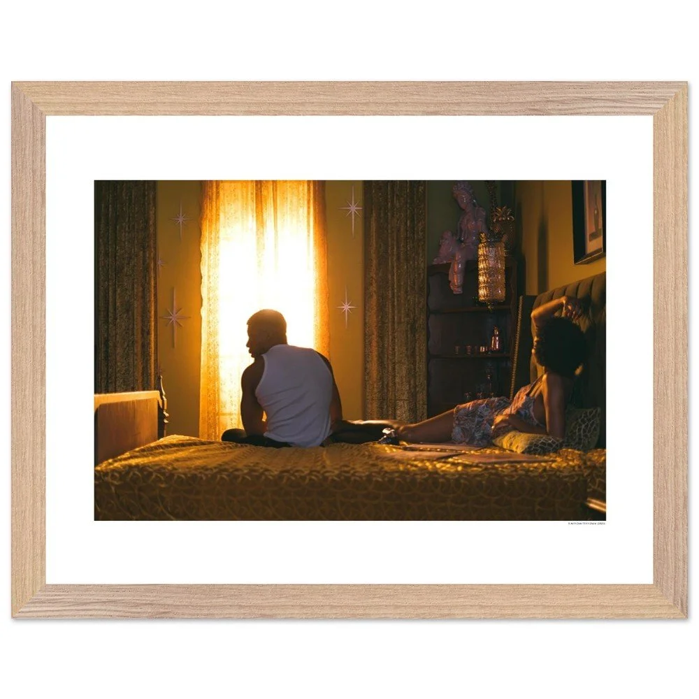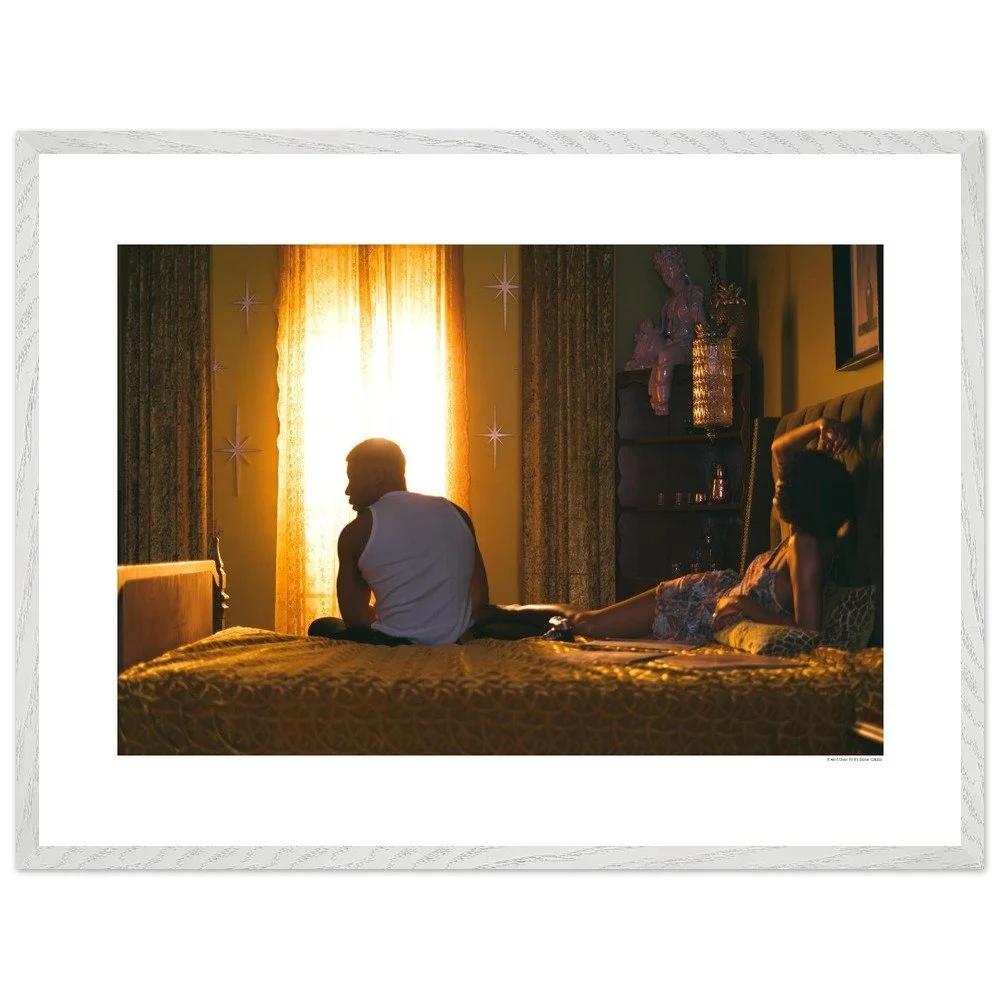 A quiet, golden moment suspended in the almost-morning hush. It Ain’t Over Til It’s Done (2025) captures two bodies sharing a room but drifting in their own constellations of thought. Light spills through the curtain like it’s choosing them on purpose, wrapping everything in that deep, cinematic warmth that turns the ordinary into myth.The scene feels lived-in: soft shadows, a hum of stillness, the gentle weight of connection and distance coexisting in a single frame. It invites you to pause, breathe, and step inside the story, however you choose to imagine it.Photography by Breanna Nichelle.Printed on premium archival paper with museum-quality color depth. Available framed or unframed.